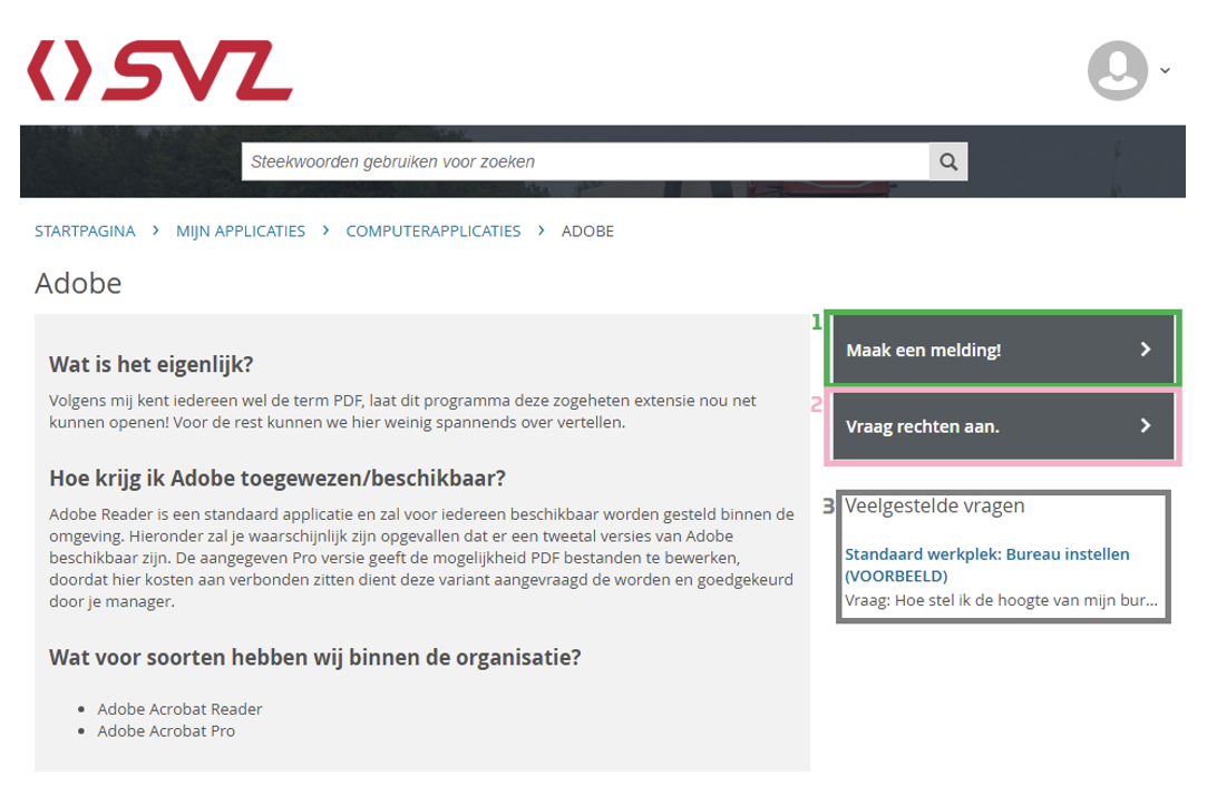 Wil je iets aanpassen? Denk bijvoorbeeld aan nieuwe functionaliteiten toevoegen in een applicatie of de rechten van een mailbox wijzigen. Hiervoor zijn losse knoppen aangemaakt, waaraan vragen zijn gekoppeld. Vul deze nauwkeurig in, zodat wij ermee aan de slag kunnen gaan.